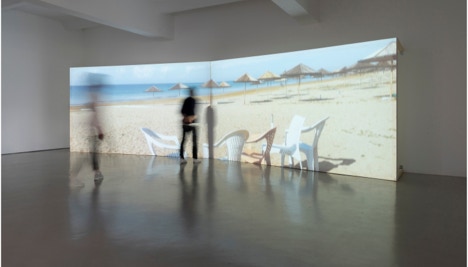 Hannah Wolfs Videoinstallation „Arbeit am Produkt“ zeigt Ruinen, und was an dieser wie auch den anderen Bildarbeiten von Wolf besonders auffällt, ist, dass die initiale adoleszente Weltablehnung in ihnen noch spürbar enthalten, aber ein paar Schrauben ins Analytische und auch ins Ambivalente weitergedreht worden ist. Ein Splitscreen in einem sehr schönen Bildformat, auf der einen Seite Bilder trister Gebäude, Hotels, Wellness-Tempel („Dreamworld resort & spa“), auf der anderen immer wieder Bilder antiker Ruinen. Zwei Modi der Weltverschrottung, ein vergangener, ein aktuell laufender, aufgenommen im türkischen Ort Side, aber das ist in diesem Zusammenhang nicht so wichtig. In den Bildern der antiken Steinhaufen schwingt noch so etwas wie Erhabenheit mit, die Bilder der noch intakten Gebäude jedoch wirken, als seien letztere bereits rundum ruinös.